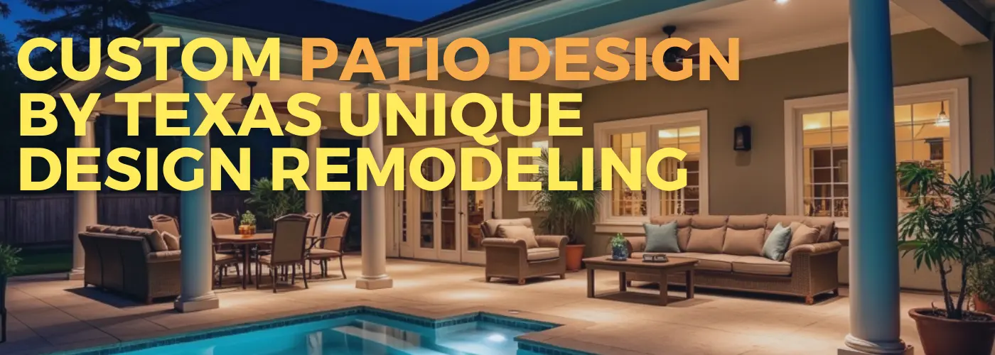 Welcome to Texas Unique Design Remodeling, your premier custom patio builders near you in Houston. We specialize in transforming ordinary backyards into extraordinary outdoor living spaces that reflect your unique style and enhance your home’s value. Our expert team combines innovative design, quality craftsmanship, and local expertise to create patios that seamlessly blend functionality with aesthetic appeal. Whether you’re dreaming of a cozy retreat or an expansive entertainment area, we’re here to bring your vision to life with our custom patio solutions.